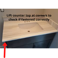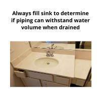 Below are pretty straight forward examples of what your inspector will look for when inspecting basins in the home. Again all plumbing fixtures have the same basic principles so – check to make sure there is a P-trap, hot and cold water shut off valves open and close, faucet and counter top are mounted correctly and nothing is leaking.