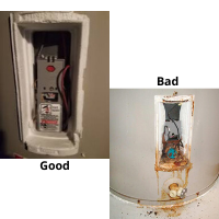 Water heaters can explode if they are not installed correctly or if temperature and pressure inside the tank get too high and are not released. Because of this, water heaters have a Temperature/Pressure Release Valve (TPR valve) which will automatically open and release pressure at 210F. The main concern your inspector is going to look for is any corrosion on the tank, no breaches at the heating elements, and whether or not the TPR valve has a drain line and that drain line is preferably going to the exterior, if not at least to a drain pan below the tank.