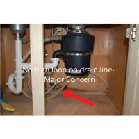 Your Myrtle Beach Home Inspector is going to run the dishwasher at the beginning of the inspection because the cycle is normally 2 hours and they have to determine if there are any issues with the drainage pump and drainage lines, also to determine whether or not the seals have any breaches. They will also look to make sure the dishwasher was installed correctly and has what is called a high-loop detailed in the diagram below. A high loop prevents waste water back flowing from your sink to your dishwasher. If the drain hose is not elevated, there is a potential for water to run the wrong way through your drain hose and can cause standing water at the bottom of your dishwasher.