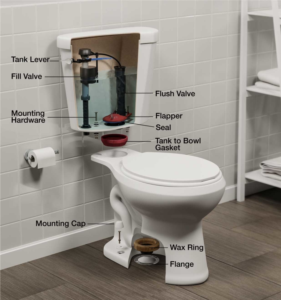 All plumbing fixtures have what’s called a P-trap below it, which prevents sewer gas from backflowing into the home – they are always full of water, however a toilet has its P-trap in the rear of the toilet itself. The main concerns the inspector will be looking for is that the toilet is mounted correctly by simply giving it a little nudge. They’ll also check to ensure the fill valve does not over run (water supply), the flush valve is not leaking and are both working correctly. The inspector must make sure the tank is mounted correctly and all water supply connections including the cold water shut off valve are supply connections are fastened correctly, not corroded or ceased, and are not leaking.